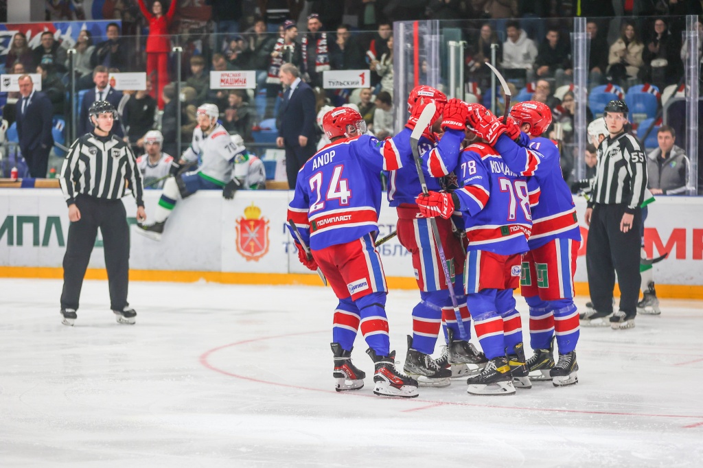 После вчерашней трудовой победы в Тюмени "Нефтяник" сумел открыть счет в матче и сегодня. Герой первого поединка серии Михаил Мокин отличился уже на исходе шестой минуты, выведя альметьевцев вперед после точного броска в касание с дальнего пятака. Тем не менее, из столь неприятного дебюта "Рубин" сумел выйти быстро и с достоинством. Уже через несколько минут после гола капитана гостей тюменцы сравняли счет благодаря точному попаданию Михаила Стихановского. А незадолго до перерыва "рубиновые" и перехватили лидерство: Кирилл Кошурников оформил гол, чем-то напоминающий шайбу Мокина - вновь в этой серии судьбу момента решило большинство. ![]() Добить "Нефтяник" хозяева попытались на старте второго игрового отрезка, когда Илья Берестенников подправил шайбу после броска от синей линии, став автором гола из раздевалки. Гости, однако, не собирались выбрасывать белый флаг, и к концовке периода вновь обострили интригу, сократив свое отставание до минимума - на исходе еще одного большинства Дмитрий Кателевский подставил клюшку на пятаке под очередной бросок издали. Впрочем, уже на исходе первой пятиминутки еще одна реализация лишнего поставила в поединке точку. Денис Давыдов поразил ворота "Нефтяника" и тем самым установил новый рекорд Кубка Петрова - его результативная серия теперь составляет 12 матчей. Его шайба также подвела черту под всей встречей - "Рубин" восстановил равенство в противостоянии, серия переезжает в Альметьевск. В вечернем матче в Туле свой первый матч полуфинала проводили АКМ и "Югра". Встреча получилась весьма качельной. Уже к середине стартового периода туляки повели в две шайбы: на 52-й секунде быстрым голом отметился Даниил Аноп, а еще через десять минут Максим Казаков удвоил преимущество АКМ. Свой разящий ответ "Югра" нанесла сразу же после перерыва - в первые пять с половиной минут Артем Мисников и Ильдар Шиксатдаров шокировали тульскую публику, восстановив паритет. Кстати, первая ответная шайба от гостей остановила рекордную серию вратаря АКМ Дениса Попова. Голкипер АКМ не пропускал шайб в свои ворота 206 минут и 32 секунды подряд - это самая длинная "сухая" серия в истории розыгрышей плей-офф ВХЛ. При ничейном результате игра заметно успокоилась и перешла в более осторожный режим. В ожидании ошибки более преуспевающими оказались хозяева - в середине третьего периода точный бросок Анопа оказался для "Югры" фатальным. Дубль защитника принес АКМ победу на старте серии - 3:2. ![]() |