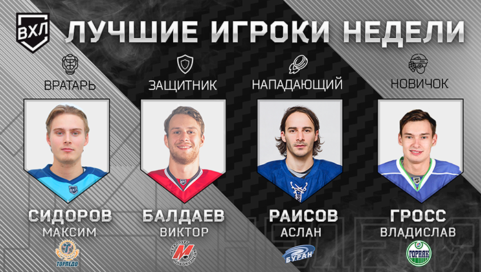 Сидоров, Балдаев, Раисов и Гросс - лучшие игроки недели в ВХЛ